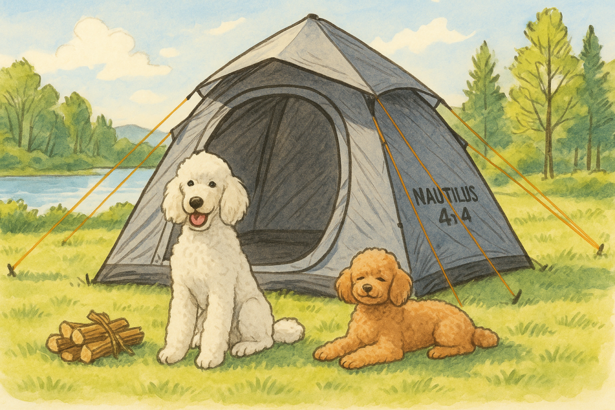 妻と息子(4)とトイプー(7)、スタンプー(9ヶ月)とキャンプをしています。